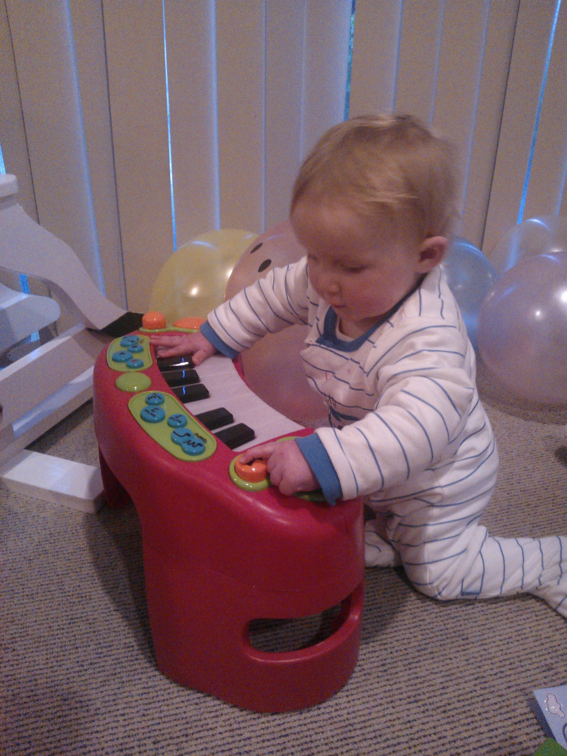 The first present was a keyboard (thank you Gran and Grandpa).  I played on that while Minnie unwrapped all of the rest.
